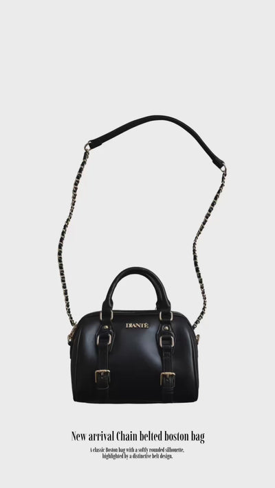 Chain belted boston bag