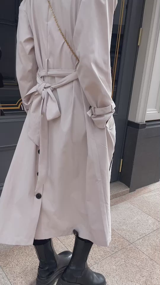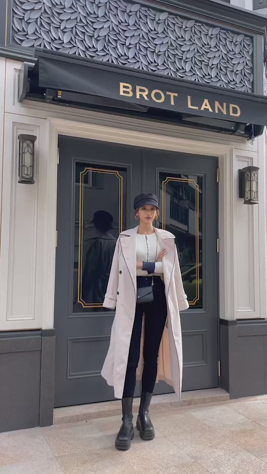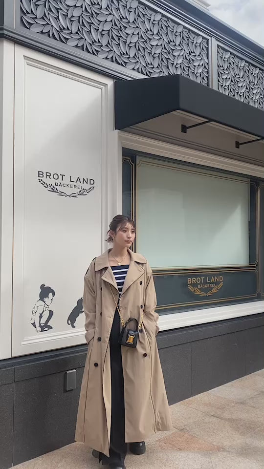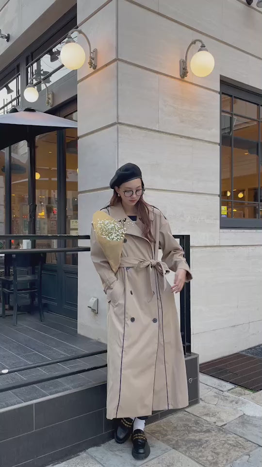 春のマストアイテム!!トレンチコートが登場! 細部にレザーのパイピングが施されており、ボタンなどは全てブラックで統一。 カジュアルなスタイリングからフェミニンなスタイリングまで幅広いジャンルで活躍するトレンチコートです! バックスタイルには、スリット+ボタンが施されており、ボタンを外すとスリットに◎ 抜け感が出るのでボタンを開けて着用するのもオススメです。