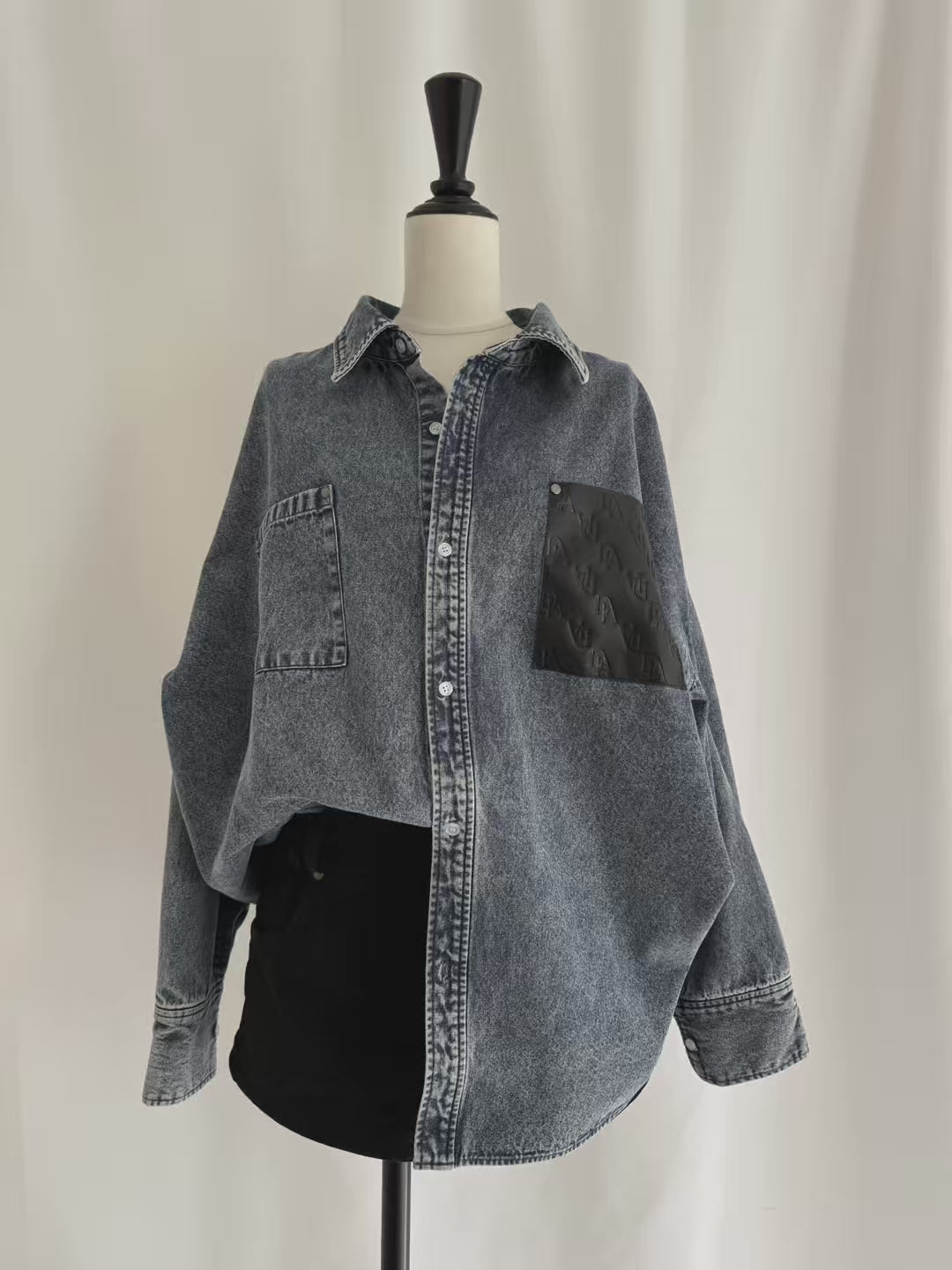 【予約】Leather pocket denim loose shirts(4月中旬〜下旬発送予定)