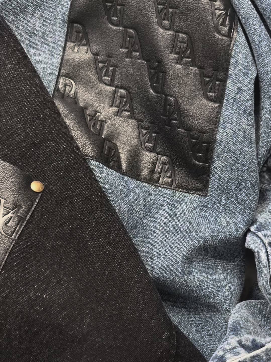 フェイクレザーのパッチポケットがポイントのデニムシャツが登場!