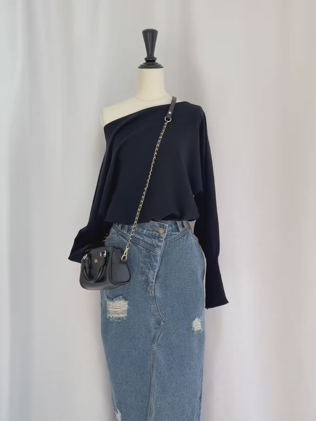 ゆったりとした落ち感のあるシルエットのオフショルダー。