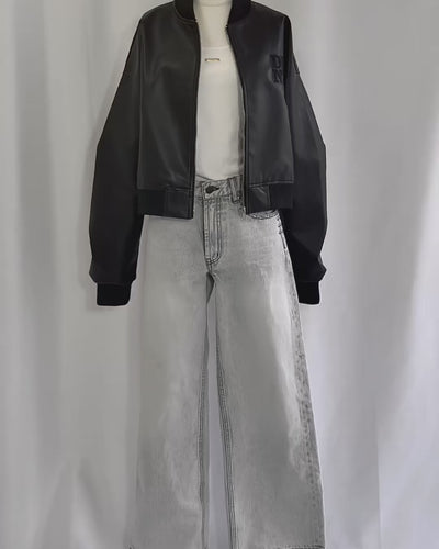 スタッズデザインが特徴的なワイドデニムパンツ。